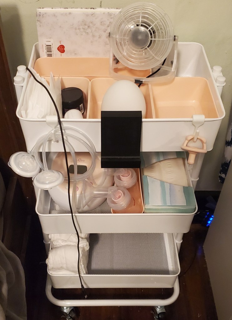 Phone stand: This is so nice to have when you feel like you need an extra set of hands. I put my phone here during nursing sessions so I can watch Netflix.